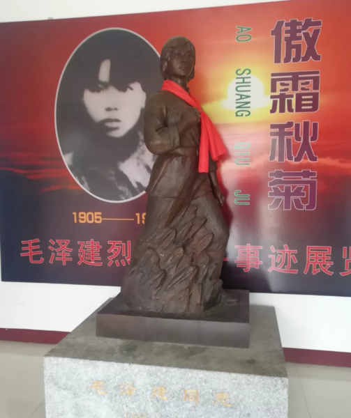90年前的8月20日,毛泽建英勇牺牲,她是毛泽东亲人中第一位烈士。这一天,作为毛泽东的堂妹、我党早期出色的女游击队长的毛泽建,一生很短,只有24年。正是青春年华的时候,她的生命戛然而止。站在纪念碑前,我仰望毛泽建这位为革命贡献了短暂一生的年青的面孔,肃然起敬。毛主席一家为了中国革命牺牲了六位亲人,令我们心中感慨万千,这些革命英雄的精神将会光照千秋,永垂青史。毛泽建(1905-1929) 革命烈士,湘潭县韶山冲人,又名毛达湘,小名菊妹子,毛泽东堂妹。1923年加入中国共产党。1926年任中共衡山县委妇女运动委员;"马日事变"后,参加领导南岳暴动,旋转移至耒阳坚持游击战争。1928年5月被捕,1929年8月就义于衡山。她是毛泽东家族第一位为革命牺牲的亲人,也是我党历史上最早的女游击队长,有“衡山朱凤”、“傲菊忠魂”之美名。 毛泽建烈士陵园位于衡阳市衡山县开云镇南郊金峰村二组紫巾山麓。在毛泽建烈士墓基础上扩建的毛泽建烈士陵园,全部为花岗岩石和汉白玉构成。陵园大门两边镌刻着一副对联,是毛泽东同志的一句诗:“为有牺牲多壮志,敢教日月换新天”。对联两边各为一副毛泽东语录,一边写着“为国牺牲,永垂不朽”;一边写着“为人而死,虽死犹生”。进入陵园大门是走道,包括石阶梯和水泥大道,道路两旁各是一排笔直的女贞树,女贞树两侧是青松翠柏,红橘果林,鲜花绿草组成的一片园林。过道尽头,是一高台,高台的正面墙上,写着“重于泰山”四个庄重的大字。高台的两侧是10余级石阶梯,登上石阶梯,便是可容纳数百人的墓坪,专供人们-祭奠。墓周绿树成荫,庄严肃穆。登上长长的阶梯,登高远眺湘江,近观美景,蓝色的天空阳光灿烂,陵园依山傍水,满山松柏苍翠,湘江水碧波荡漾,此景令人心潮澎湃。作为我国最早的女游击队长,湘南起义的主要领导者之一,我党早期的优秀女共产党员,毛泽建当年在衡阳三师发展了很多杰出女性加入党组织,包括何宝珍烈士(刘少奇夫人)、伍若兰烈士(朱德夫人)、夏明衡烈士(夏明翰妹妹)、李祈欣(李立三妹妹)、曾志(陶铸夫人)等。1928年2月毛泽建调离衡山,前往耒阳,任耒阳女界联合会负责人。在同年5月的一次战斗中,毛泽建和陈芬先后被敌人逮捕,敌人杀害了陈芬。不久,毛泽建被井冈山根据地的红军救出。面对敌人的猛烈反扑,为了不拖累同志们,身怀有孕和负伤的毛泽建坚决要求留在当地隐蔽,产后,不幸再次被捕。敌人抓到毛泽建后,以她“系毛泽东之妹,马日前后,均负共党要职”,把她从耒阳押到衡阳,后又押到衡山,使用封官许愿和酷刑拷打,梦想从这位共产党员、女游击队长身上捞到我党的重要机密和军事行动计划,但毛泽建始终坚贞不屈。她在狱中写下了“誓死为党”,“毛泽东是大有希望的,革命一定会胜利”等血书,表达了自己对党的赤胆忠诚。毛泽建被捕后,先是关在耒阳,后押往衡阳。在衡阳女子监狱被叛徒彭瓒指认,押往衡山,前后关押一年多,始终坚贞不屈。敌人对她严刑拷打,皮鞭抽,杠子压,灌辣椒水,烧红铁丝穿乳房,她依然大义凛然,敌人得到的口供只有三个字:“不知道!”后来,敌人要叛徒彭瓒劝降,毛泽建怒目痛斥:“要我变节,除非日从西边出,湘江水倒流。”衡山伪县长、-老手蔡庆萱亲自提审,并表示不相信共产党人不怕死时,毛泽建放声大笑道:“革命者不怕死,怕死不当共产党。”1929年8月20日,这天,衡山县城黑云密布,狂风大作,天气突然变得刺骨般的寒冷,在通往马王庙平的路上,几十名白军士兵荷枪实弹走在两旁,一位衣衫褴褛满身伤痕的女子走在中间,她手戴镣铐,目光坚毅,高声呐喊:“今天杀了我一个毛达湘,还会有千千万万个毛达湘站出来,革命者杀不尽,斩不绝!”悲壮声落,女子壮烈牺牲。她的一生很短,只有24年,正是青春年华的时候,生命戛然而止。 毛泽建牺牲后,敌人严令三天内不准收尸。但是当天晚上地下党组织就派人从同善堂找来一个木板钉的棺木箱子,将毛泽建初葬在衡山县城郊湘江河畔的石溪桥头柳树旁,并用一块青砖刻上了毛泽建的名字,安放在棺木箱子的盖上。半年后,地下党组织又定做了一口木棺,暗地将毛泽建烈士的遗体重新收殓,迁葬于巾紫峰山麓,并用一块石桥板做碑,深埋地下。1968年8月20日,中共衡山县委举行衡山县建设毛泽建烈士墓奠基大会,开始修建毛泽建烈士墓。1969年8月20日,在毛泽建英勇就义40周年纪念日,毛泽建烈士墓正式落成。1976年9月1日,中共衡山县委将毛泽建烈士遗骸迁葬新墓。 随后,笔者返回县城途中,又参观了新建的毛泽建公园。公园旁边,就是由毛泽建烈士侄女毛小青亲自题写馆名的毛泽建烈士纪念馆。这里,展览了毛泽建的生平事迹。 1905年,毛泽建出生在湖南韶山冲东茅塘。出生时正好是菊花盛开的季节,父母就叫她“菊妹子”。毛泽建是家中老大,自幼聪明伶俐,帮助父母照看弟弟们。毛泽建的父亲毛尉生,是毛泽东的嫡堂叔,因过度劳累,年轻时就得了肺病,无力耕种,家中7亩土地日渐荒芜。于是,1915年,毛泽东的父亲毛顺生建议弟弟毛蔚生将田地交与他一起耕种。从此,在韶山上屋场,两家人合并成为一家人,一起劳作,一起生活,一个锅里吃饭。小时候,毛泽建热爱劳动,深得毛泽东父母的喜爱。特别是毛泽东的母亲为人宽厚、善良,十分疼爱菊妹子,把她作为亲生女儿抚养。三个哥哥也很喜欢她。毛泽东的母亲文七妹重病期